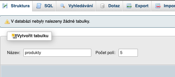 V rámci této databáze budeme mít dvě tabulky s názvy prodeje a produkty.