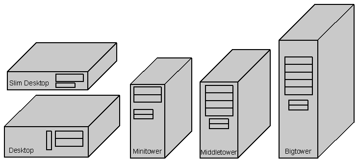 - big tower – pro nejvýkonnější počítače, hodně místa pro rozšíření, je nejvyšší.