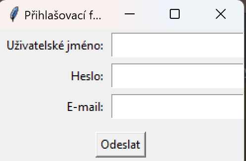 tlacitko_odeslat.grid(row=3, column=0, columnspan=2, pady=10) # Tlačítko zabere oba sloupce a má vnější odsazení