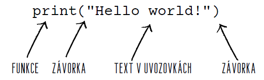 Print je funkce. Funkce je slovo, které vyvolá nějakou akci. Za každou funkcí následují dvě závorky.